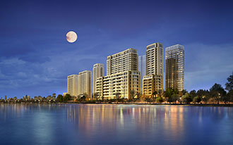 在城市公寓的营造上,蓝城考虑到是城市和谐的天际轮廓线和城市文脉的对接,是更注意从细节去满足中国人不断上升的居住审美需求。蓝城认为,房产品要讲究附加值,没有人文价值的园区无疑是一座“泥城”。营造者们应该为人们提供安定、美好的生活的氛围,一个交流、活动的场所。这对设计师来说,则意味着要花更多的心血和工夫。在很多高层公寓中,设计师们将门厅、连廊以及一些半室内半室外的空间安排成酒吧、茶座等供大家交流的场所、空间,尽量营造出“天涯若比邻” 的居住氛围,让邻居之间能够自由自在地、无拘无束地交谈。这样的细节在蓝城的营造历程中数不胜数,也成为蓝城特有的营造方式和语言。